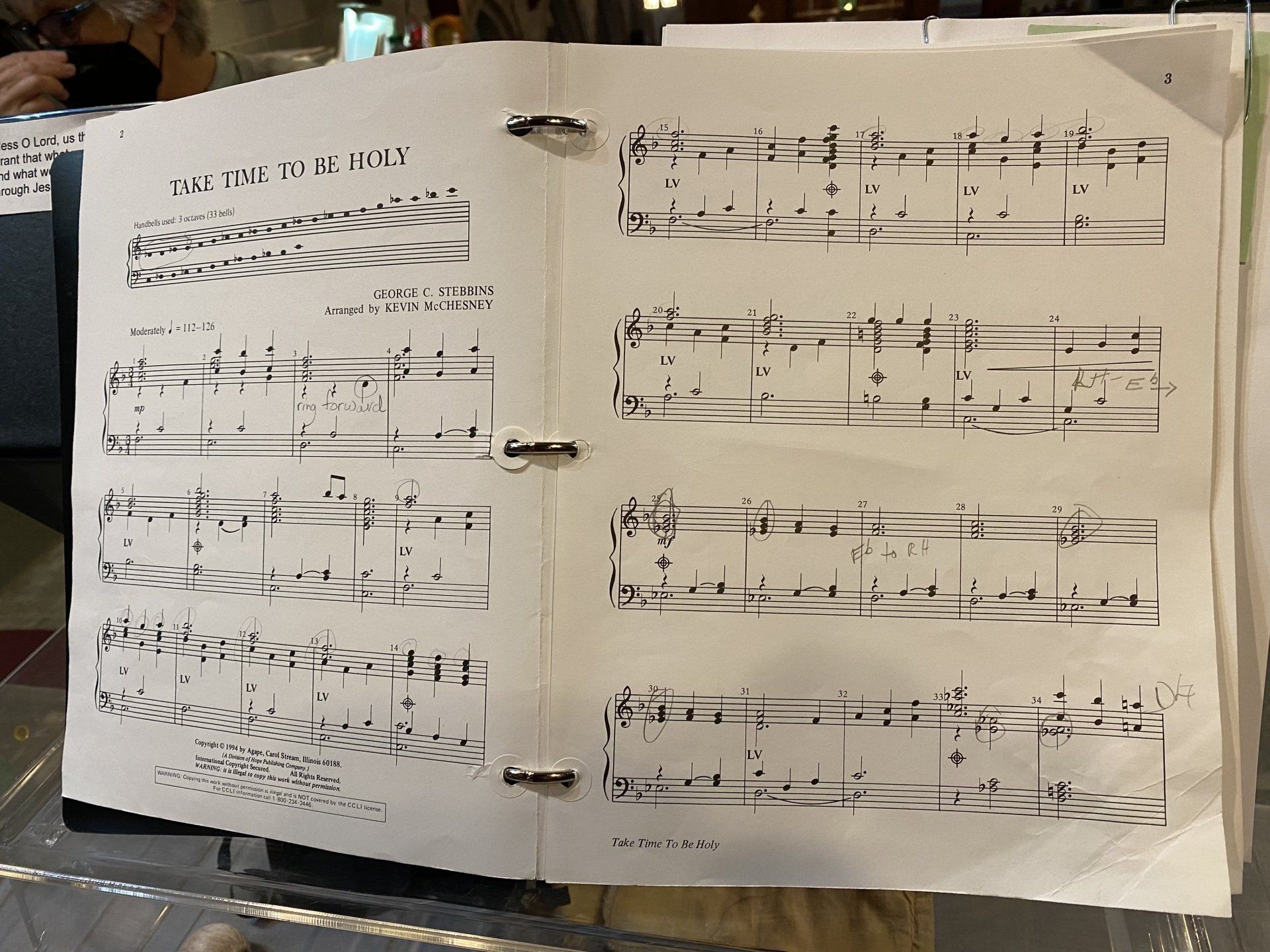Our Handbell Choir plays during our 9:30am Sunday service once a month on the 4th Sunday. Practice is normally at 6pm on Wednesdays (check our church calendar first). We welcome new participants to the handbell choir. It's easy to learn if you have experience reading music. Handbell music rings recognizable music with melodies and harmony to bring a spiritually uplifting song to the congregation.
